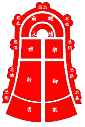 註解:禮-品德、樂-藝術、射-技藝、御-領導、書-學業、數-邏輯以品德為本、健康為錨、閱讀為