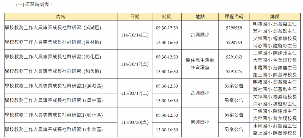 ●學校教務工作人員專業成長社群研習I (彰化區)