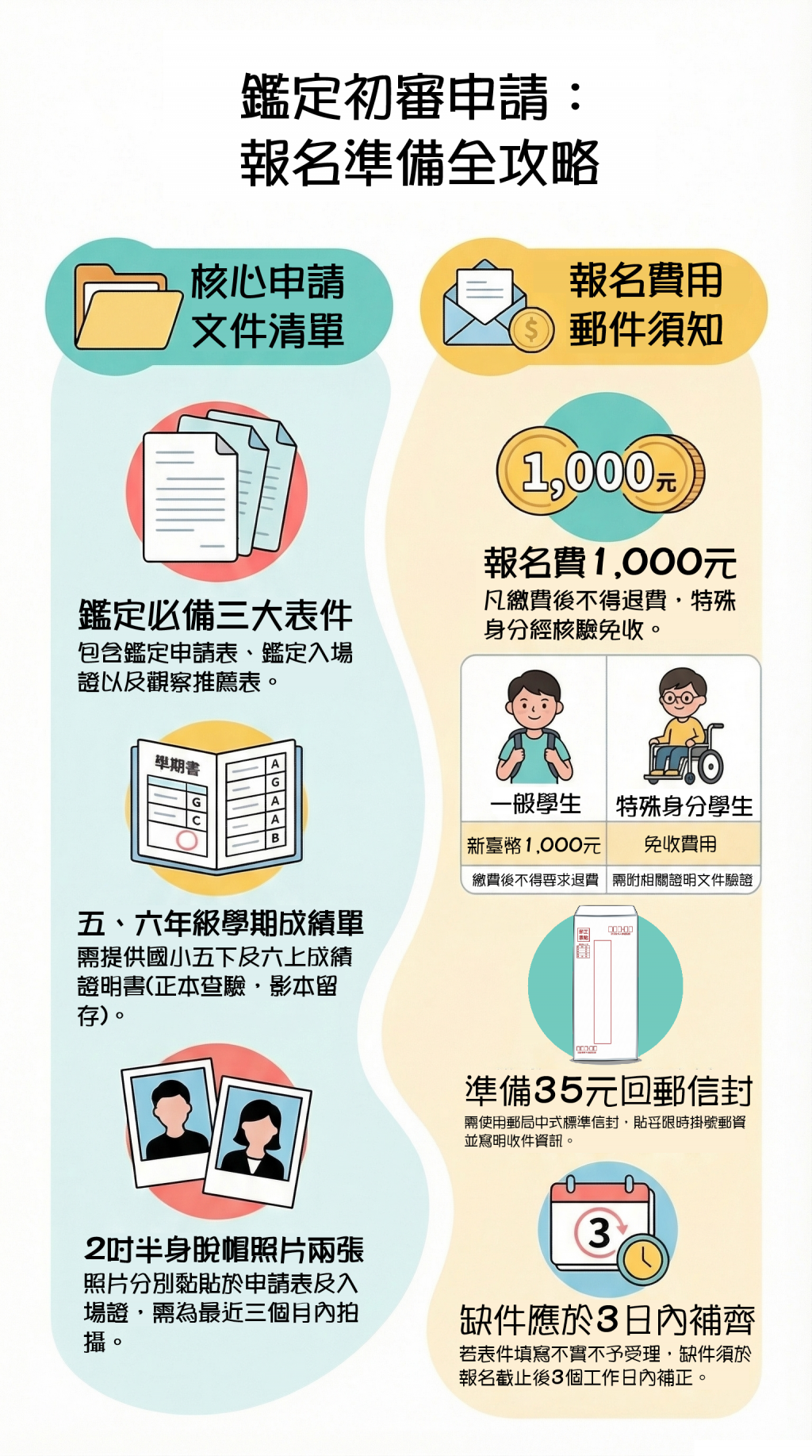 6.報名費:新臺幣1000元。(凡已報名繳款者不得以其他理由退費或更改報名類別。低收入戶子女、中低收入子女、身心障礙學生及持有身心障礙證明人士之子女、原住民,經驗證後免收費用;檢附之證明文件說明請見壹拾、其他)。