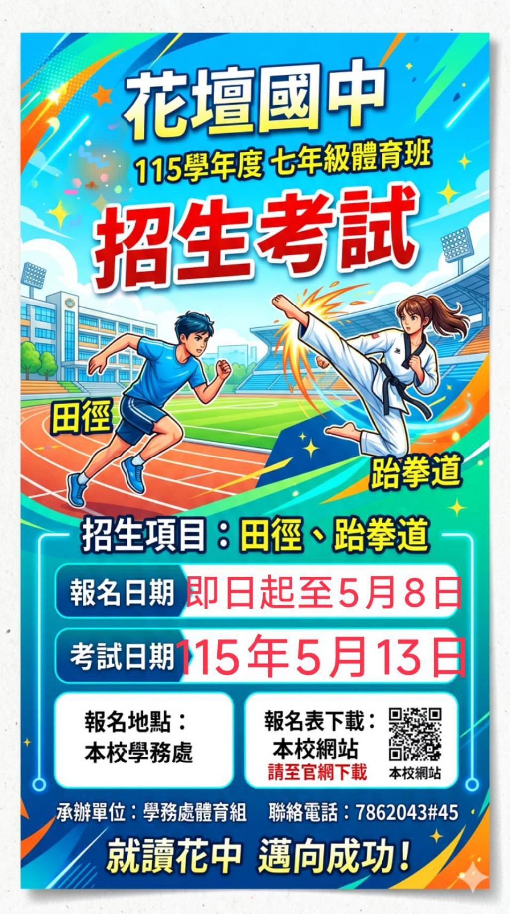 彰化縣立花壇國民中學115學年度七年級體育班招生簡章